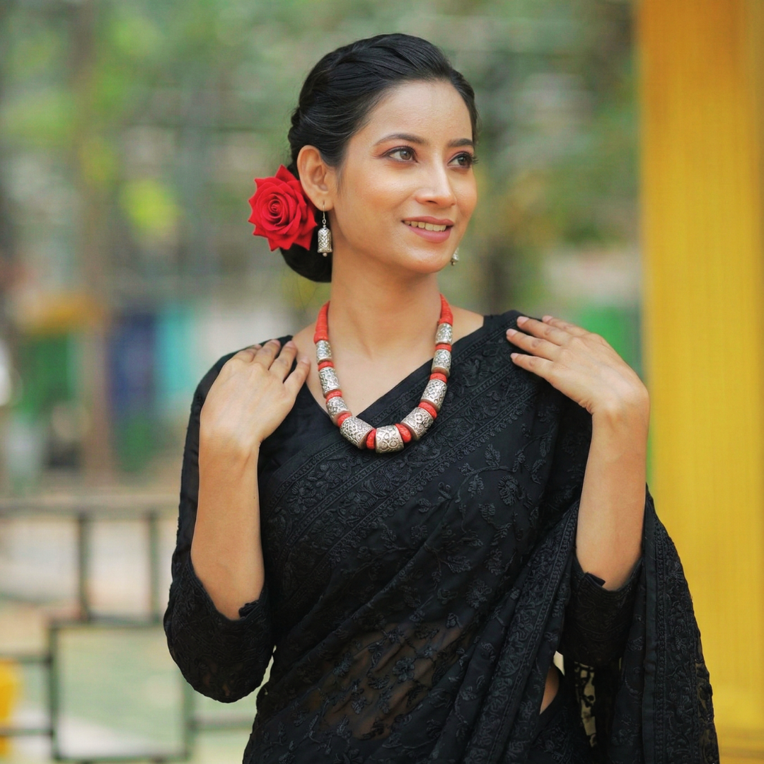 Discover the charm of classic elegance with this German Silver Jewellery, known for its timeless appeal and versatile styling. Crafted from high-quality German silver alloy, this piece offers a rich metallic shine with an antique-inspired finish that complements both traditional and modern outfits. German silver jewellery is loved for its durability, lightweight feel, and intricate detailing. Ideal for festive occasions, cultural events, casual ethnic wear, and statement styling, it pairs beautifully with sarees, kurtas, lehengas, and Indo-western looks. Whether you’re building an everyday ethnic collection or looking for a standout accessory, this German silver jewellery adds effortless sophistication and heritage-inspired beauty to your wardrobe.